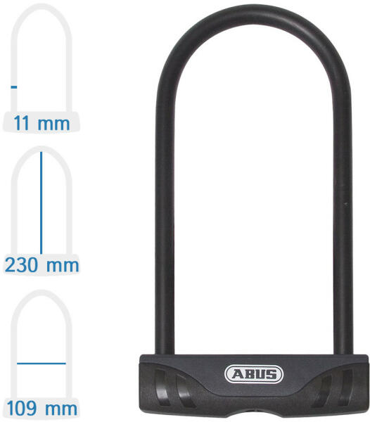Abus Facilo 32/150HB230 + USH32 kerékpár U lakat: Edzett, 12 mm-es kengyel ABUS minőségi zárbetét 10 mm vastag, kiváló minőségű acélkábel két hurokvéggel PVC-borítás a lakkozott felületek védelme érdekében Súly: 950g ABUS biztonság: 7 / 15 USH 32 - Tartó a zár kerékpáron való szállításához. A műanyag bilinccsel 15 - 35 mm átmérőjű kerek csövekre rögzíthető.