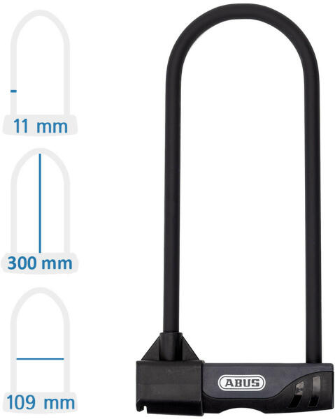 Abus Facilo 32/150HB300 + USH32 kerékpár U lakat: Edzett, 12 mm-es kengyel ABUS minőségi zárbetét 10 mm vastag, kiváló minőségű acélkábel két hurokvéggel PVC-borítás a lakkozott felületek védelme érdekében Súly: 1160g ABUS biztonság: 7 / 15 USH 32 - Tartó a zár kerékpáron való szállításához. A műanyag bilinccsel 15 - 35 mm átmérőjű kerek csövekre rögzíthető