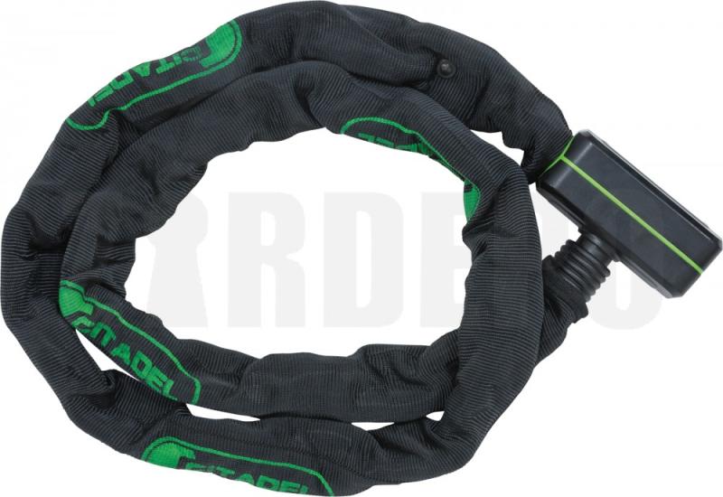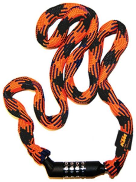 Length: 120cm Thickness: 3mm- Userselectable number combination - Compact design - Flexible chain with fabric coating - Zinc lock body with PP housing