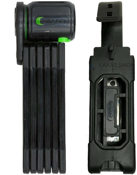 Citadel Berlin CF 85/K/B hajtogatható kerékpár lakat: Flexibilis és megfelelő biztonságot nyújt a kis kockázatú lopásokkal szemben Speciális zárszerkezet, 3 db kulcs Acél lapok, műanyag borítással, amely védik a kerékpárvázat a sérülésektől Egyszerű kezelés és rögzíthetőség a vázon a mellékelt tartó segítségével Súly: kb. 1,2 kg Hossz: 85 cm Citadel biztonság