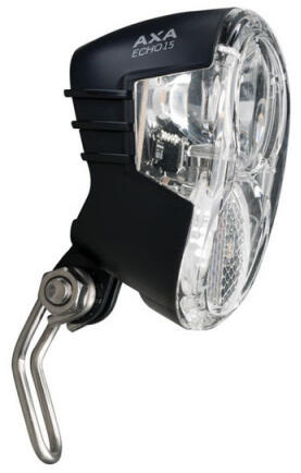 Axa Echo 15 dinamós első lámpa kapcsolóval Biztonság: Az integrált prizmának köszönhetően a szembe jövő forgalom korábban észlel bennünket. Nagy fényeloszlás - beleértve a az út szélét is. A tökéletes lencsének köszönhetően oldalról is jól látszik a kerékpáros Technika: Működtethető hagyományos- és agydinamóval. Víz- és ütésálló Kapcsolóval ki/be kapcso