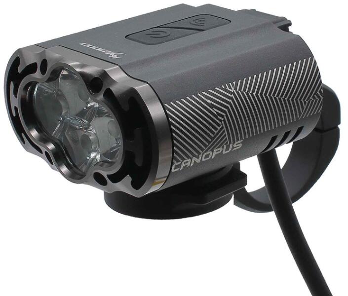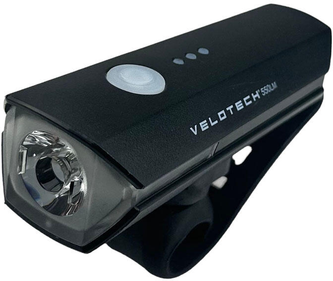Tulajdonságok VELOTECH PRO belső akkumulátoros alumínium első lámpa, ami szélesen világítja be az utat. Ultra fényes 1 CREE XPG-3 (6500K) + 2 CREE XTE (4000K) Fényerő: 1200 Lumen Színhőmérséklet: 6500K (hideg fehér) + 4000K (közép fehér) Üzemmódok: Külön gomb a tompított és távolsági üzemmódok váltására. Bekapcsolt állapotban ugyanaz a gomb kétszeri gyors megnyom