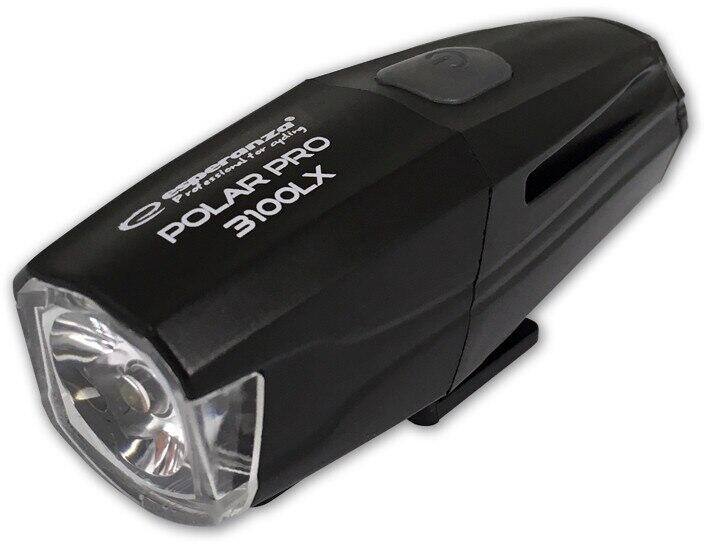 Professzionális, vízálló kerékpáros lámpa Esperanza POLAR PRO 3100 LX erős, fehér CREE T6 típusú LED diódával rendelkezik, amely MAX módban 3100 lx teljesítményű erős fényt bocsát ki. A szupererős fény egyenletesen megvilágítja az utat akár 200 m távolságban Ön előtt, és több mint 2000 m-ről látható. A lámpa MAX módban akár 100 percig is működik. 8 beépítet