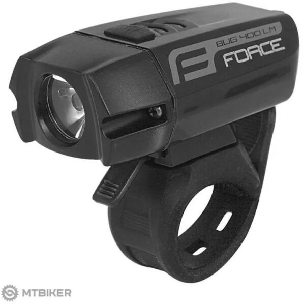 FORCE Bug 400LM újratölthető első lámpa A Force BUG-400 első lámpa nagy teljesítményű fehér CREE XPG-R5 LED-del rendelkezik , 400 lumen fényerejű, így nem kell attól tartania, hogy nem látja az utat.