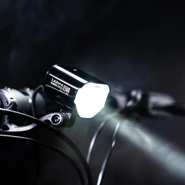 Első lámpa. StVZO tanúsítvánnyal rendelkező e-bike kerékpáros lámpa. Kiváló minőségű, megmunkált alumínium ház. Akár lenyűgöző, 500 lumen fényerőt is kínál. Egy integrált 130 cm-es (51,2 hüvelykes) kábellel érkezik, amely az e-bike motor/akkumulátor rendszeréhez csatlakozik. Két rögzítési lehetőség is rendelkezésre áll – egy Composite Matrix elülső tartó