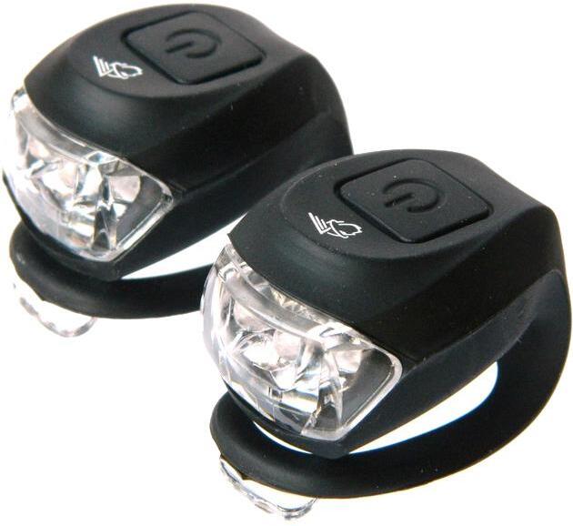 Szilikon kerékpár villogó szett. 2 Super bright LED. Folyamatos és villogó üzemmód. Vízálló szilikon gumi test. Szerszám nélküli rögzítés. Elem: 2x2 db CR2032 (tartozék). Szín: fekete