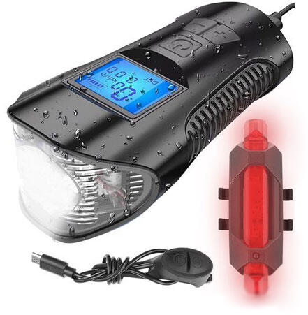 Trizand LP-1805 kerékpáros computer, első és hátsó lámpával