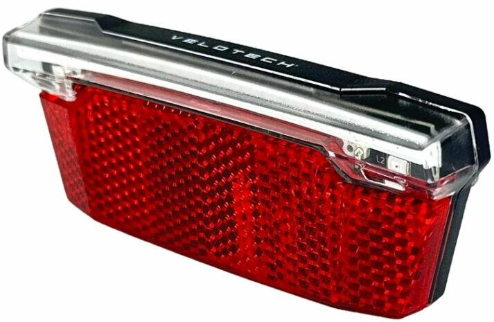 Tulajdonságok VELOTECH hátsó lámpa csomagtartóra E-bike 2 szuperfényes, piros LED + 21 chipLED COB Funkciók: folyamatos - féklámpa Feszültség: 6V-48V Súly: 38 g 20db / csomag %