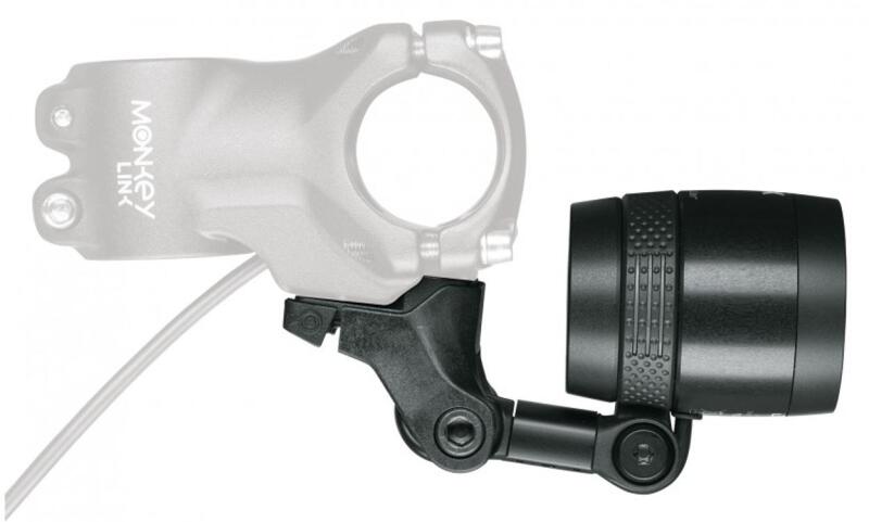Alumínium házas első lámpa E-bike-okhoz. A MonkeyLink kapcsolatot teremt a kerékpárod és a kiegészítők között – mágnesesen, gyorsan, egyszerűen. A világítást az akkumulátor látja el energiával és a kijelzőről működtethető. A sportos E-MTB kerékpárodat néhány mozdulattal a mindennapos használatra megfelelővé alakíthatod. A világítás mágnesesen rögzül és az