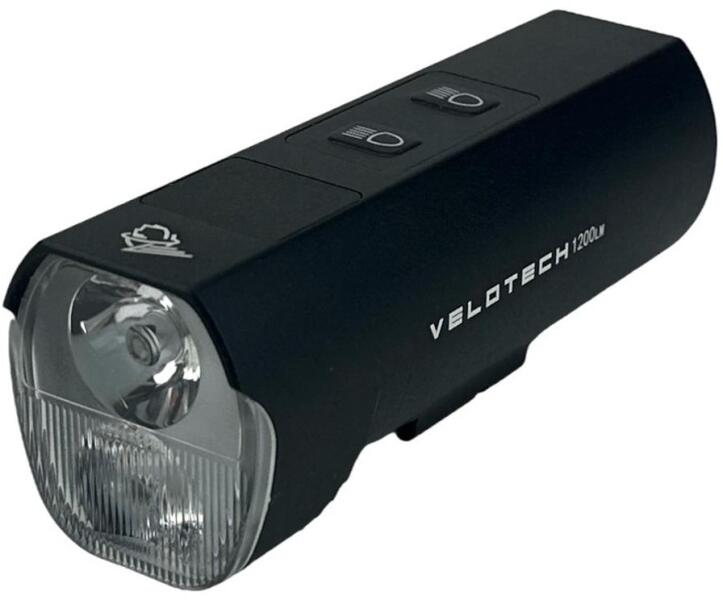 VELOTECH PRO belső akkumulátoros alumínium első lámpa Ultra fényes 1+1 (6500K+4000K) CREE XPG-2 LED Fényerő: 1200 Lumen Színhőmérséklet: 6500K (hideg fehér) + 4000K (közép fehér) Üzemmódok: Külön gomb a tompított és távolsági üzemmódok váltására. Bekapcsolt állapotban ugyanaz a gomb kétszeri gyors megnyomásával együttes világítás. Tompított (4000K): Szupererő