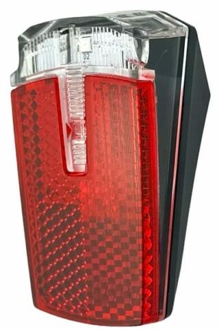 Csomagtartóra szerelhető hátsó kerékpár lámpa 3 db szuper fényerejű piros LED-del, állófény funkcióval és beépített prizmával.