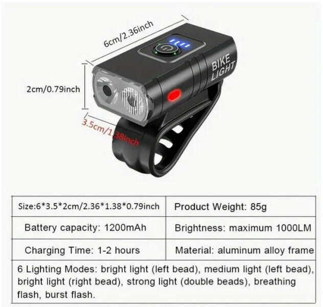 Könnyű és kompakt, USB-ről tölthető első lámpa. Erős 120 lumen-es XPE CREE LED. Gyorsan és könnyen tölthető az USB segítségével. Közlekedésbarát izzó. Vízálló alumínium ház Airflow Cooling System (ACS) rendszerrel a megfelelő hőszabályozás érdekében. Üzemmód: nagy fényerő. Gumírozott, vízálló kapcsoló. Többfunkciós elem lemerülésére figyelmeztető jelz