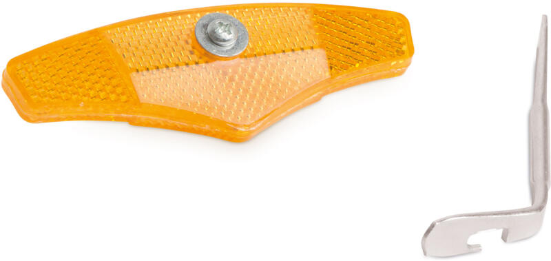 Eladási egység: 1csomag Küllőre szerelhető hagyományos kerékpár prizma. Energiaellátást nem igényel, a környezetből érkező fényt veri vissza, így a kerékpáros oldalirányból is láthatóvá válik. Hagyományos fényvisszaverő prizma Narancssárga színben Egy csavarral felszerelhető Biztonságos közlekedés sötétben is Mérete: 110 x 35 mm Felszerelhetőség: Küllőre Sz