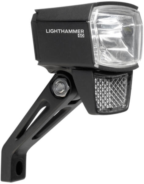 E-BIKE VERZIÓ!A Lighthammer sorozatban, mérnökeink kombinálták a legkorszerűbb LED-technológiát egy kifinomult optikai rendszerrel. Az eredmény: tökéletes világítás, ami közelről meggyőző, távolságban és szélességben. 60 lux fényereje széles fénymezőt biztosít extra közeli megvilágítással. Az állandó világítás és a nappali menetfény üzemmódok extra biztons