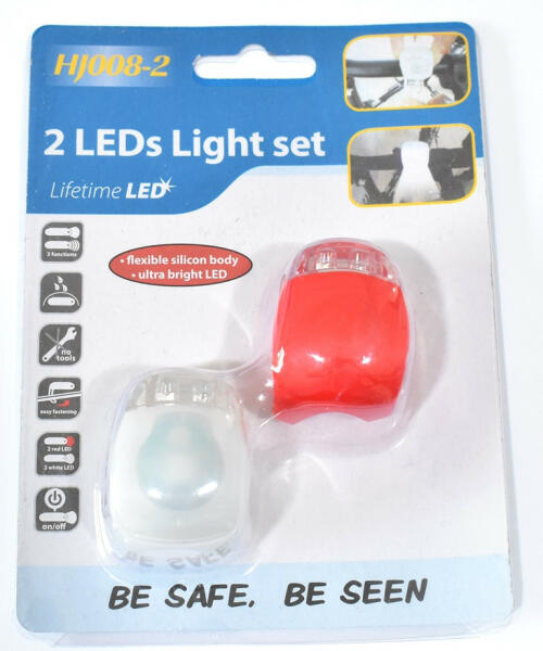 Bicikli lámpa Szilikon pántos - Bicikli lámpa Szilikon pántos - Piros-fehér Kerékpár kormányra és az ülés alá könnyen felhelyezhető szilikonos bicikli lámpa piros és fehér színben. Két keréken ülve fontos, hogy jól láthatóak legyünk a szürkületben és a sötétben. Ehhez nyújt segítséget ez a 2 db-os erős fehér fényű LED-es kerékpár lámpa , mely 3 módon világ