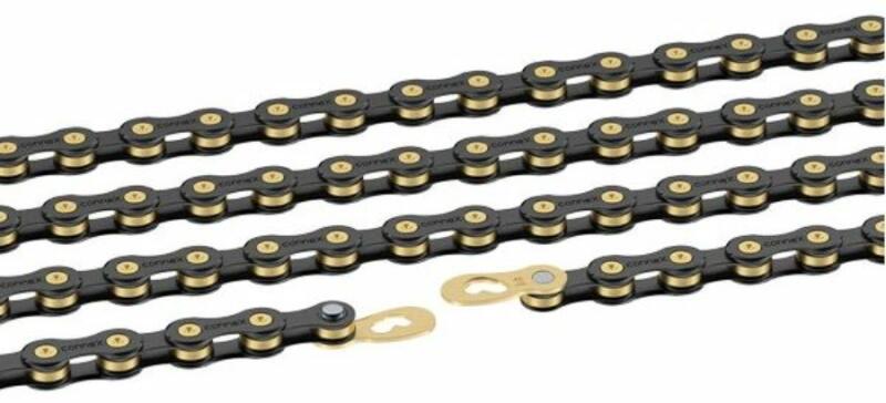 Connex 10SB kerékpár lánc, 10s, 114 szem, patentszemmel, fekete-arany színű A láncszemek kialakítás csendes és precíz váltást biztosít. Használható országúti és MTB rendszerekhez is. Nem ismered ez a márkát? Vidd a neve fölé a kurzort, és mutatjuk! 1000-ből 1 hiba! De miért?