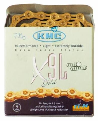 KMC X9 SL kerékpár lánc, 9s, 116 szem, könnyített, patentszemmel, arany színű 116 tagú, 1 1/128-as szélességű, 9 sebességes váltásrendszerekhez, sport bicajokra szánt, kedvező árú lánc Csaptávolság / szélesség (col): 1/2 x 1 1/128 A kép illusztráció Nem ismered ez a márkát? Vidd a neve fölé a kurzort, és mutatjuk! 1000-ből 1 hiba! De miért?