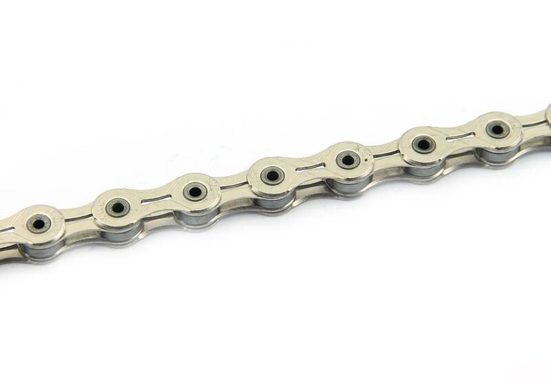 10 sebességes lánc. 116 tag. Továbbfejlesztett külső lapforma: finomabb első váltás, ritkább láncbeszorulás. Továbbfejlesztett belső lapforma: finomabb hátsó váltás. Könnyített lapok. Továbbfejlesztett szegecselés a stabilabb, megbízhatóbb váltásért