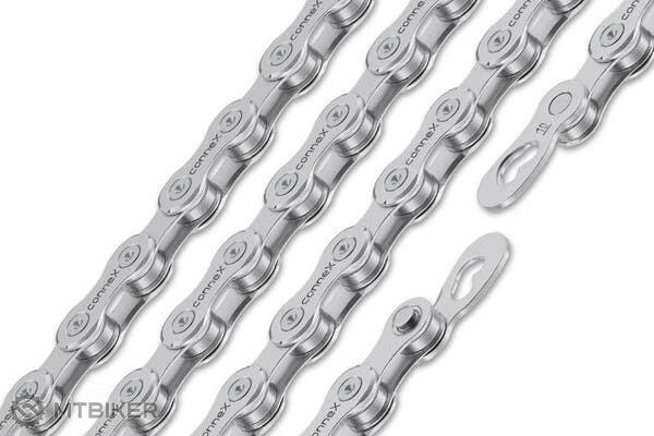 Connex 10s0 lánc mind a 10 sebességes rendszerhez, ezüst színű, 114 lengőkar, kuplunggal együtt. Megfizethető Connex 10s0 acéllánc 114 lengőkarral, minden közúti és MTB 10 sebességes rendszerhez. Hossz : 114 cikk Súly : 264 gramm Szín : ezüst