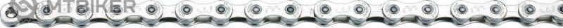 11 sebességes lánc. Megerősített láncszemek elektromos kerékpárokhoz. 136 cikk. Felületkezelés: Nikkel. Súly: 316 gramm. Gyorscsatlakozó mellékelve.