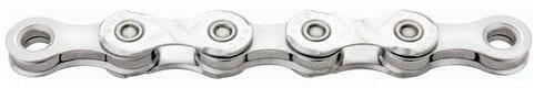Prémium minőségű, nagy szakítószilárdságú, 10 sebességes E-bike kerékpárlánc, anyaga: acél, szín: ezüst, 128 tagú. Kerékpárlánc 10 sebességes E-bike Anyaga: acél Szín: ezüst