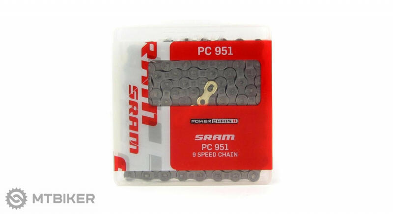 SRAM PC 951 lánc 9 sebességes váltórendszerekhez készült lánc 114 lengőkaros hosszban Power Lock gyorscsatlakozóval a csomagban.
