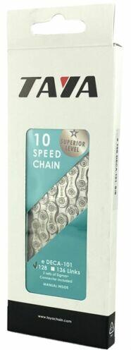 Tulajdonságok TAYA eDeca-101 10 sebességes E-bike lánc Anyaga: DHT (Diamond Hard Treatment) felületkezelt acél a kimagasló tartosságért. E-bike kompatibilitás: Bosch és Yamaha 85Nm forgatónyomatékú rendszerekkel tartósan tesztelve, 1000W-os és 160Nm-es középmotoros pedelec rendszerhez jóváhagyva. Mérete: 1/2" x 5/64" x 128L Szín: ezüst 2 pár patentszemmel. Az ár 1 darabra v