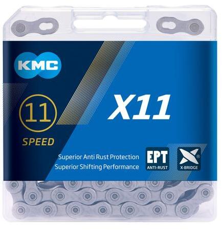 Tulajdonságok X11EPT1/2"x11/128" Kompatibilis: SHIMANO, Campagnolo, SRAM és minden 11 sebességes rendszerhez 1x11, 2x11 , 3x11 EPT Rozsdásodás elleni bevonattal Highest Pin Power Eco ProTeQ Double X Durability Double X Bridge Shape Outer Plate Chamfering Inner Plate Chamfering