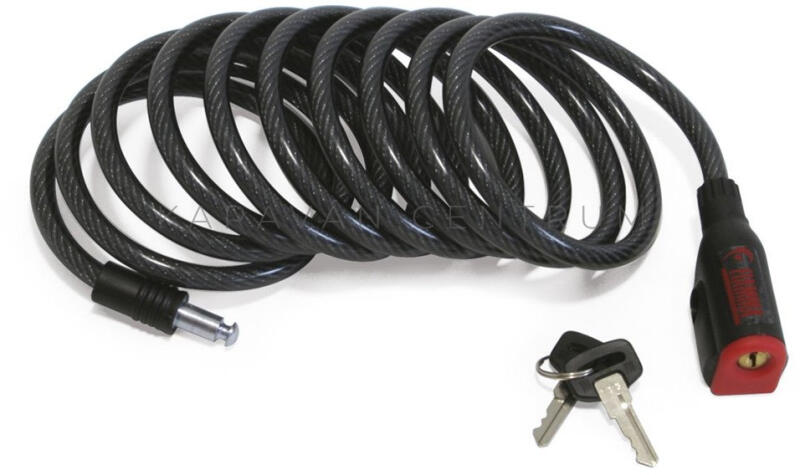 2,5 méter hosszú, fekete pvc-vel bevont zárható acélsodrony a kerékpárok egymáshoz, illetve a kerékpártartóhoz történő rögzítésére. Praktikus lopás elleni védőeszköz