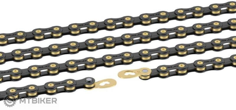 XLC lánc CC-C03, 114 láncszem, 10 sebességes rendszerekhez, fekete/arany szín Megbízható CC-C03 lánc a német XLC márkától, alkalmas 10 sebességes váltórendszerekhez 114 lengőkarral (1/2 x 11/128). Az optimális korrózióvédelmet az ultrafekete bevonat biztosítja, a szokatlan megjelenést arany köztes cellák egészítik ki. A csomag egy arany gyorscsatlakozót tartalmaz. Megneve
