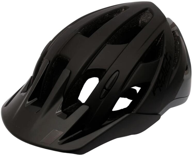 Kerékpáros sisak - Nem: unisex Cél - kerékpározás: MTB Szín: fekete In-Mold technológia: Igen Védőszemüveg: kivehető Rovarok elleni védőháló: nem Rögzítő rendszer: állítható szíj csattal Szellőzőnyílások száma: 15