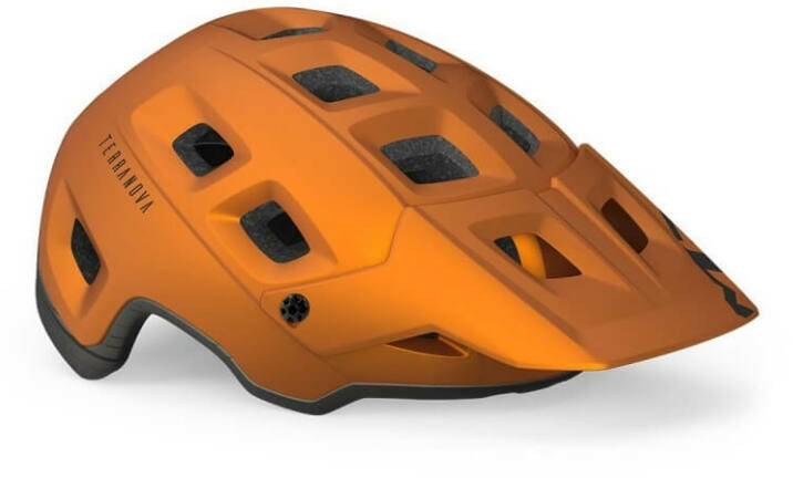 MET Terranova unisex MTB bukósisak, L-es méret (58-61 cm), metál narancs-titán. A MET Terranova trail- és e-MTB-kerékpározáshoz készült. A normál MTB bukósisakhoz képest nagyobb a fejfedése, jobban körbeöleli, a fejet. Felépítését és illeszkedését a díjnyertes Roam ihlette, garantálva az optimális kényelmet. Öntött polikarbonát héj EPS béléssel Állítható napelle