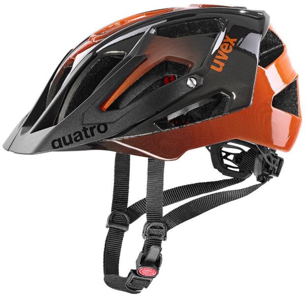 All-mountain MTB kerékpár sisak double inmould felépítéssel a nagyobb biztonságért és tartósabb használatért. Az Uvex Quatro sisak egyedülállóan illeszkedik a fejre, köszönhetően a magasságban is állítható, anatómikus kialakítású méretállító rendszerének. 17 szellőzőnyílással, rovarhálóval és felhajtható, csavarral rögzített napellenzővel rendelkezik, mely