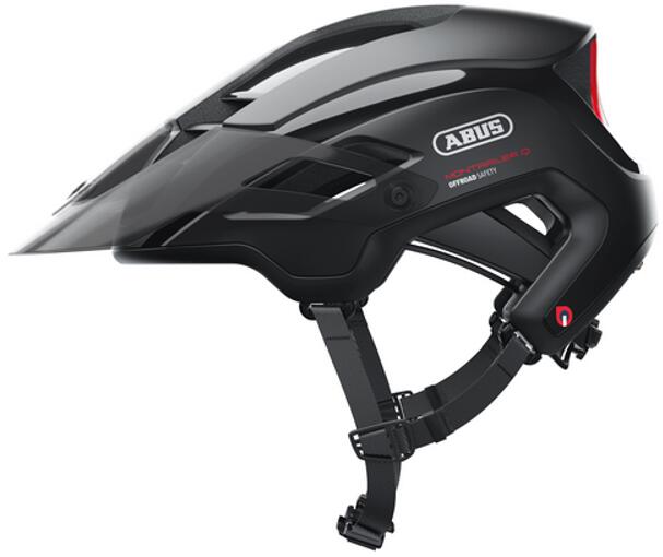 Az ABUS MonTrailer speciális bukósisakja biztosítja a védőszemüveg rögzítését. Ugyancsak helyet biztosít a szemüvegnek az átlátszó visor alatt, amikor az nincs használatban, így garantálva a kiterjesztett látómezőt és nyújt védelmet a tükröződések ellen. Átlátszó visor, GoggFit, AntiCage, Copf kompatibilis.
