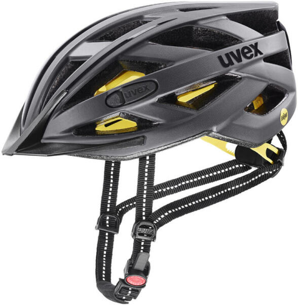 Városi kerékpáros sisak kiemelkedő tulajdonságokkal az extra láthatóságért. Az Uvex City I-vo MIPS sisakja minden elemében a láthatóságot növeli: fényvisszaverő matricákkal és pántokkal, valamint a sisak hátuljába illeszthető biztonsági villogóval felszerelve. Szélességben és magasságban is fejhez igazítható, a MIPS rendszer pedig extra védelmet nyújt a csavaró hat
