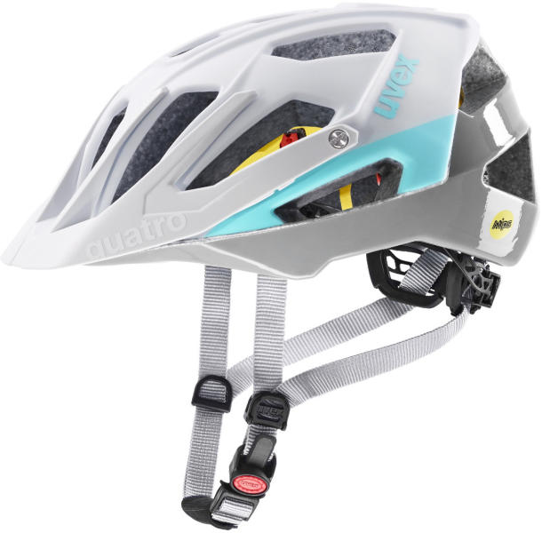 Nagyon kompakt MTB kerékpáros sisak , uvex quatro cc, dupla öntőformával. Az Uvex quatro cc egy igazi univerzális, amely a lehető legjobb védelmet nyújtja minden típusú terepen. A kétrétegű felépítés lehetővé teszi , hogy az EPS védőhab közvetlenül a polikarbonát héjba kerüljön, ami könnyűvé teszi a sisakot és egyben nagy ütésállóságot biztosít. Az anatómiai I