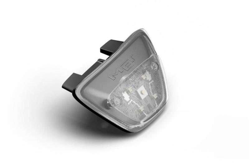 Egyedi sisaklámpa, amely be- és kipattintható a hátsó szellőzőnyílásba. Kompatibilis: MET Echo, Eldar, Hooray és Mobilite sisakokkal. 4 nagy intenzitású piros LED Állandó és villogó üzemmódok Elemes áramforrás (3V CR 2032)