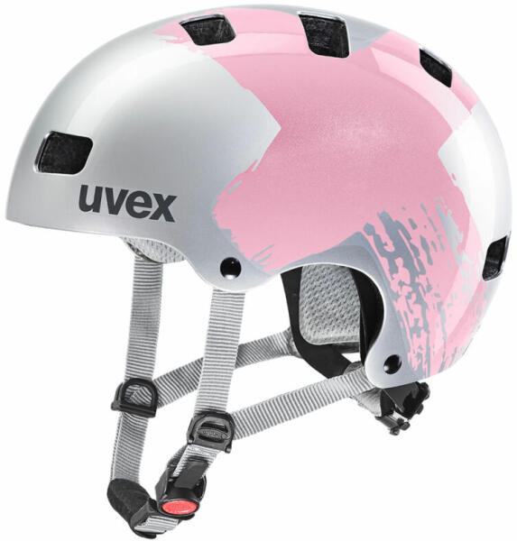 Kemény héjjal rendelkező gyerek kerékpáros sisak fényes festéssel, ami nyugodtan használható gördeszkázáshoz és görkorcsolyázáshoz is. Az Uvex Kid 3 sisak mélyen lenyúló hátsó része biztos védelmet nyújt a hátulról érkező ütésekkel szemben, 10 szellőzőnyílással és egyszerűen kezelhető racsnis csattal rendelkezik. Hardshell felépítés 2 héj méret FAS pánt I