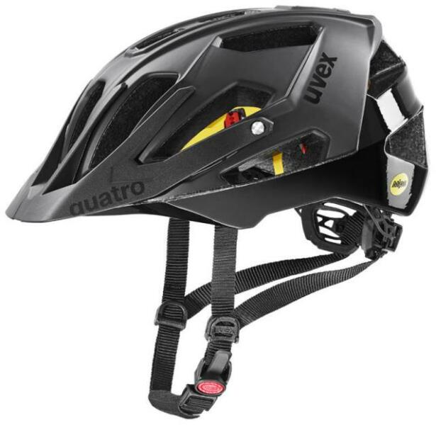 Az Uvex Quatro CC MIPS MTB kerékpár sisak double inmould felépítésének köszönhetően könnyű, ugyanakkor tartós és ellenálló, a beépített MIPS rendszer pedig extra védelmet nyújt az ütközés pillanatában fellépő csavaró hatású erőkkel szemben. Nagyméretű, anatómikus kialakítású méretállító pánttal és állítható napellenzővel. MIPS védelem a csavaró hatás