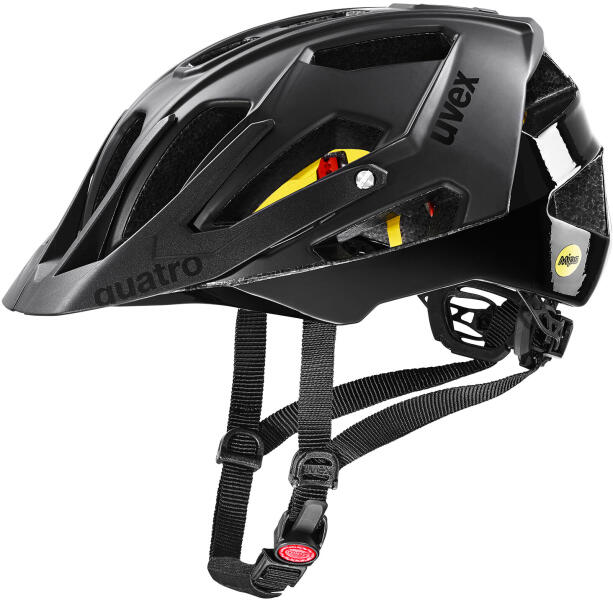 Kerékpáros sisak - Nem: unisex Cél - kerékpározás: MTB Szín: fekete In-Mold technológia: Igen Védőszemüveg: kivehető Rovarok elleni védőháló: igen Rögzítő rendszer: állítható pánt - gomb megnyomásával Szellőzőnyílások száma: 17