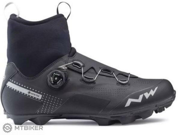 Férfi tornacipő, hidegebb hónapokra, Jaws karbon talppal, SLW2 feszességgel, 4 rétegű Arctic 4L talpbetéttel. férfi XC tornacipő Northwave Jaws karbon talppal - keménység 8/15. A Gore-Tex Pique membrán nagyon ellenáll a kedvezőtlen körülményeknek, és a harmadok felső része átlapolási technológiával készült, amely megakadályozza a nem kívánt nyomást. Az SLW2 gyorsfesz
