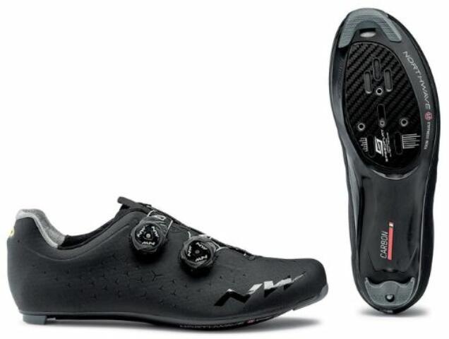 Northwave Road Revolution 2 országúti kerékpáros cipő, SPD-SL, fekete, 41,5-es Talp merevség: 12 Regular FitMéretek: 38–48 (feles méretek is) Talp: Morph Carbon 12 AAS karbonbetétes kialakítás, kiemelkedő teljesítmény, extramerev és könnyű kivitel. Anatómiai lábboltozat-alátámasztás (Anatomical Arch Support®) Felsőrész: egybeszabott Biomap kialakítás, kényelmes lábra