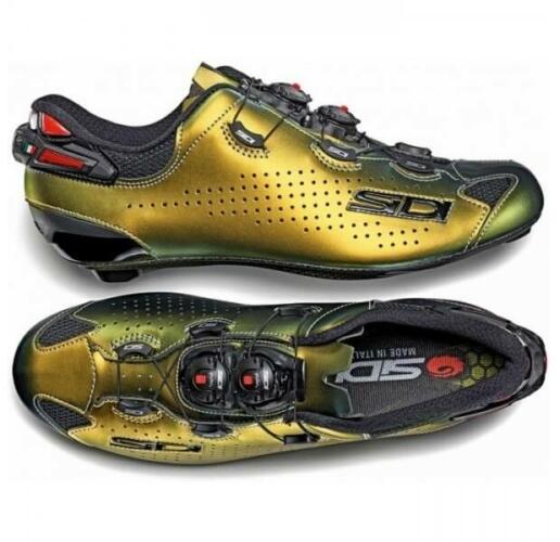 Sidi Shot 2.0 L. E. országúti kerékpáros cipő, arany színű, 42-es. Rendkívül könnyű, ám kényelmes, egész napos tekerést lehetővé tevő cipő, mely felépítésének köszönhetően tökéletes beállítást tesz lehetővé. Jellemzők: TECNO 3 RENDSZER: A záróelem a cipő nyelvén található, hogy tökéletesen körbetekerje a lábát, ha be van állítva. Microfibre felsőrés