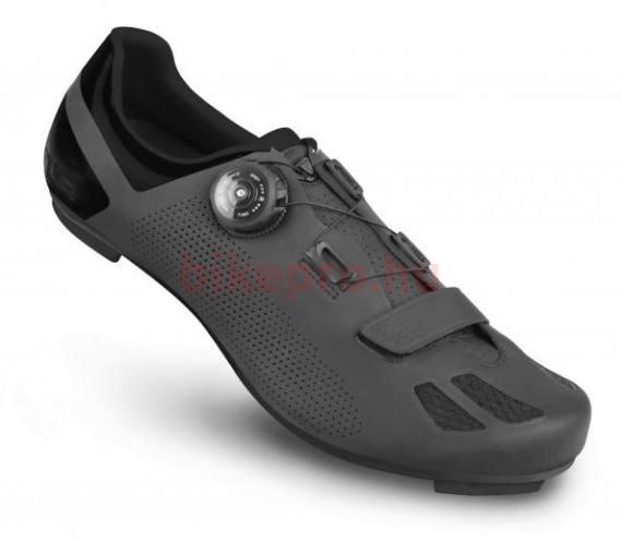 FLR F-11 országúti kerékpáros cipő, SPD-SL, fekete, 42-es Az F-11 felsőrésze az R250 országúti talpon nyugszik, amely kompromisszum-mentesen tartós, jó teljesítményt nyújt és kényelmes. A lelkes kerékpárosoknak készült. Az újratervezett nylon talp a merevség, súly és kényelem tökéletes kombinációja. Az elől lévő nyílás biztosítja a szellőzést. Két csúszásmen