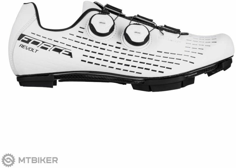 SPD pedálokkal kompatibilis teljesítményfokozók (merevségi index 10). A szerkezet mikroszálas felsőrészből és karbon talpból áll. A sarok és a lábujj megerősített . A csúszásmentes belső rész anatómiailag kialakított betéttel rendelkezik a kényelem érdekében. A szellőzőnyílások kiváló légáramlást biztosítanak. A tornacipőt 2 db ATOP A-A41 kerékkel kényelmesen