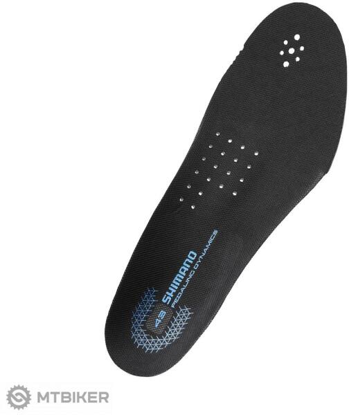 Shimano STANDARD harmadik fokozat betétek. Ezeknek a betéteknek a formája optimalizálja a sarok dőlésszögét, és így biztosítja a stabilitást pedálozás közben. A sarokrész a tartós és kemény EVA anyagnak köszönhetően jobb kényelmet biztosít a kerékpárról való lesétáláskor.