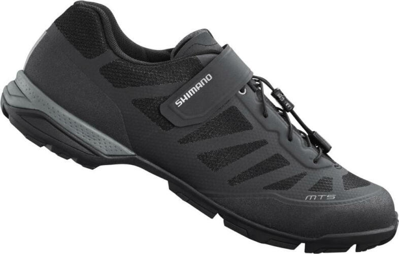 Shimano SH-MT502 MTB SPD trekking/túra kerékpáros cipő, fűzős-tépőzáras, fekete, 43-as Hobbi cipő, SPD-s, fűzős-tépőzáras kialakítással. Optimális egyensúly a hajtáshatékonyság és a kényelmes járás között. TÖBBCÉLÚ TÚRACIPŐ JELLEMZŐK · A túrastílus által ihletett kerékpáros cipő egyesíti a könnyű túracipők és csúcsteljesítményű MTB cipők előnyei