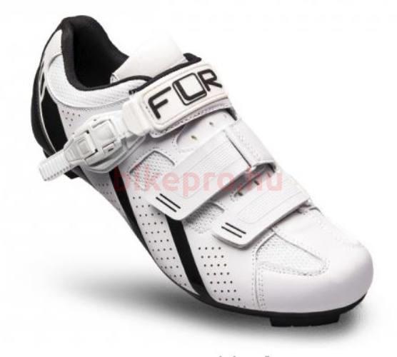 FLR F-15 III országúti kerékpáros cipő, SPD-SL, fehér, 42-es Az F-15 könnyű, erős és kényelmes! 3 pontos záró rendszerrel tervezték: egy csat és két tépőzár biztosítja a pontos illeszkedést és a biztos tartást. A középső tépőzár „második bőr érzetét keltve illeszkedik a lábad formájához, az alsó pánt pedig segít a nyomás eloszlatásában becsípődés érz