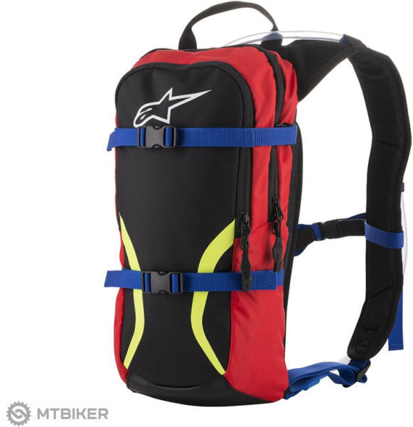 Alpinestars Iguana hátizsák 6l strapabíró anyagból, Ripstop nylonból és 450 Denier poliészterből. 2 zsebe van, az egyikben egy 1,5 literes víztartály található. Tartalmaz egy vízálló cipzáras zsebet minden érték tárolására és egy polár belső zsebet a szemüvegek számára. A pántok légáteresztőek. 2 csat segítségével kényelmesen rögzítheted a sisakot vagy a prote