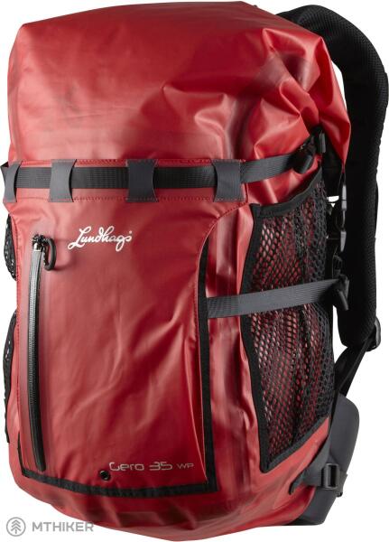 Vízálló hátizsák feltekerhető fedéllel. Vízálló hátizsák ragasztott varrással, tekercs sapkával, 35 literes űrtartalommal és 1100 g tömeggel. Hátizsák teljesen vízálló roll toppal Nagy, rugalmas elülső zseb Hátul hálós bélés a jó szellőzés érdekében Elasztikus hálóból készült oldalzsebek Kompressziós hevederek az oldalakon Biztonsági zseb Kivehető csípő